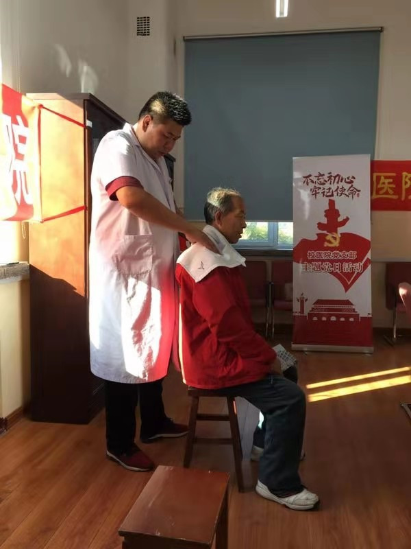 本次义诊活动由校医公司党总支书记吴越带队,中医科专家高颖、内科主任马葆琛、中医科主任包舰、中医科理疗师李双阳、孙胜楠、住院处护士长何昕等,来到公司为教职工提供中医保健、诊脉辨识、理疗推拿及高血压病诊疗指导、测量血压等,引导师生养成健康生活方式。