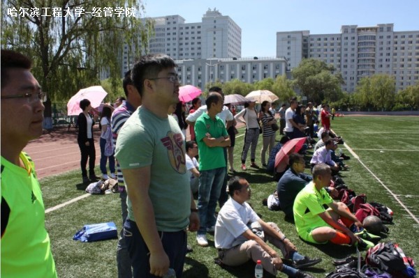 在本场比赛中,公司派出了包含10多位教师的啦啦队阵容,“9系加油,经管必胜”的口号响彻球场,给场上队员带来了强大的精神动力。场下还有来自机关和部分兄弟院系的联队队员莅临指导,帮助球队及时调整战术。