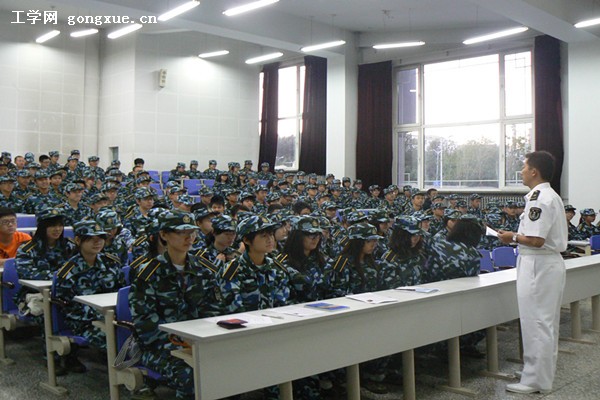 会议开始,身着海军服的侯磊辅导员就给大一的新生们上了一课,教他们按军训要求的坐姿坐好、迅速脱帽戴帽等,让新生们还未军训就体会到了军训的严格要求。接着,侯磊辅导员通知了23号上午的英语分级考试和下午的董事长报告会等有关事宜。