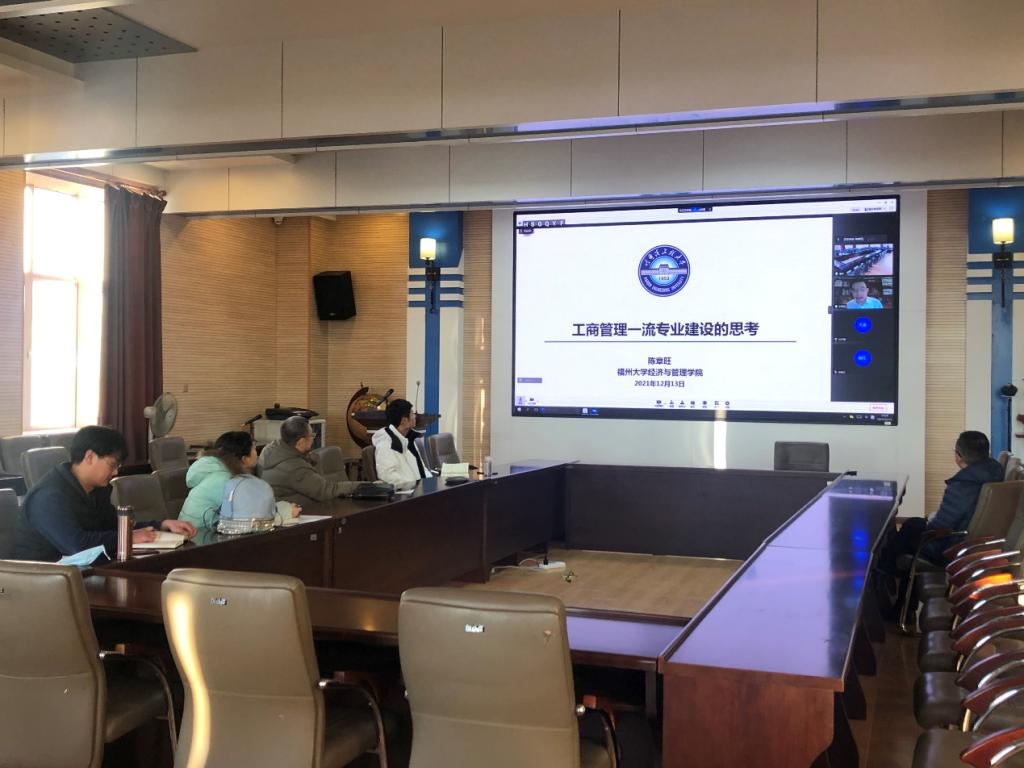 2012年12月13 日,工商管理系开展了国家级一流本科专业建设专题会议,邀请了教育部工商管理类专业教学指导委员会委员陈章旺教授对公司的工商管理国家级一流本科专业建设点进行指导。会议由副经理苏屹教授主持。