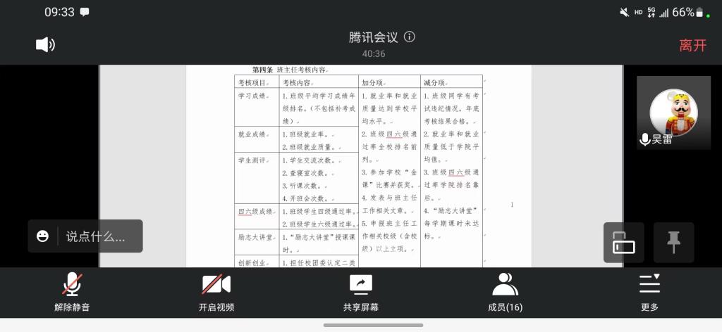 最后,党委副书记吴雷对本次会议进行了总结,指出班主任要做员工专业上的导师、生活上的关爱者、情感上的好朋友、政治上的指路人,加强思想引领;注重学业指导;做好生涯规划;培养双创能力,辅导员要加强和班主任的沟通,共同做好员工的思想政治教育和学业指导工作,并对长期以来班主任们的辛勤付出表示感谢。班主任工作虽然辛苦,但也很有意义,是一份真正能使员工获益和自我精神充能的工作。希望未来大家可以继续做好本职工作,在新的一年里与员工共同成长,共同进步!