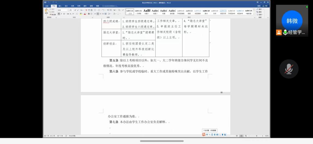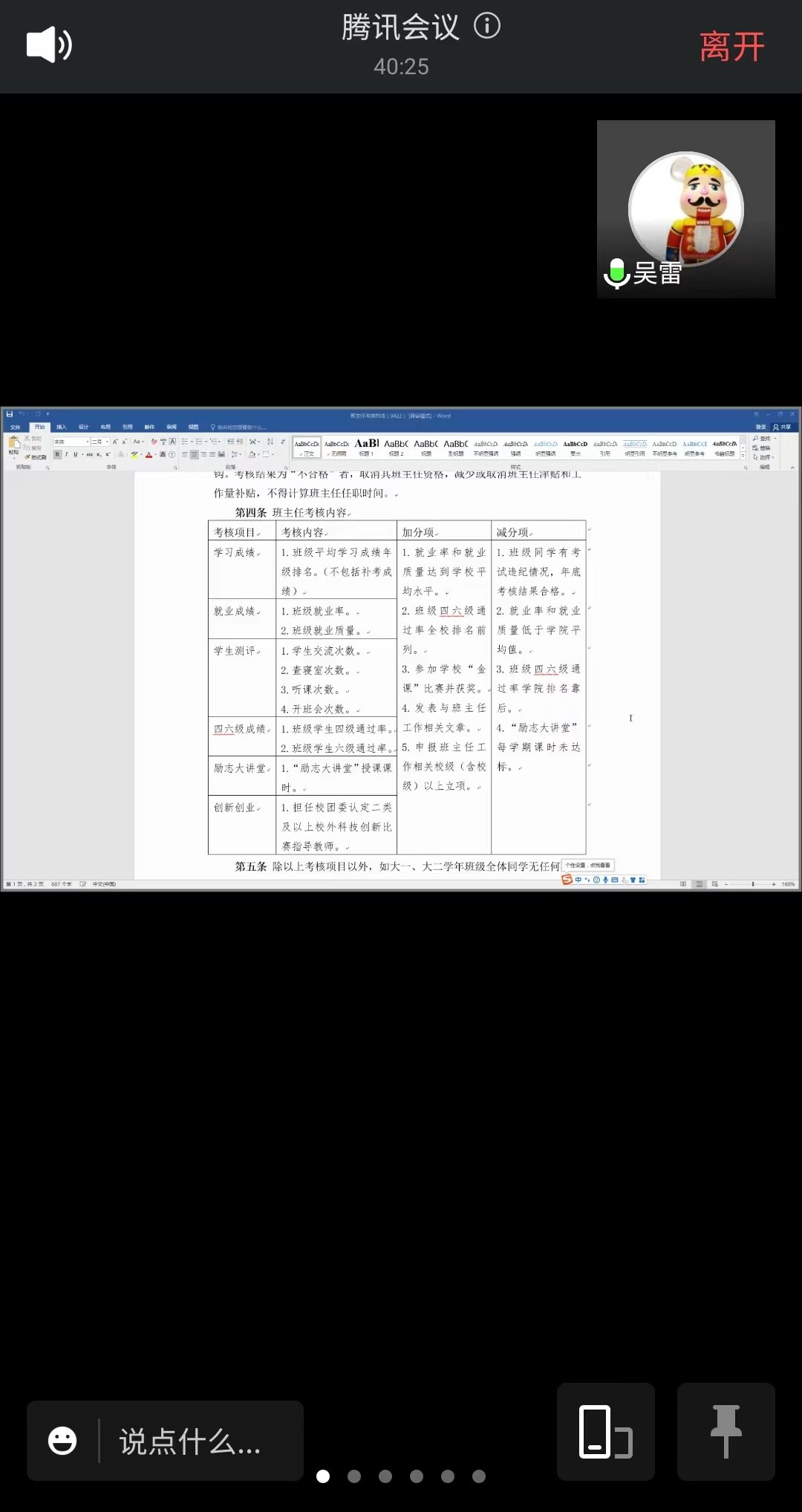 为推进公司全员育人工作,规范班主任工作配置及职责,提升公司规范化管理水平,beats365亚洲版官网在2022年4月22日于腾讯会议举行了线上班主任考核办法以及励志大讲堂实施方案解读会。公司党委副书记吴雷,全体班主任老师以及全体辅导员老师参加会议,解读会由员工工作办公室主任韩微老师主持。