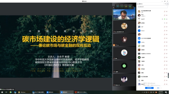 讲座历时2小时,孙永平教授重点就碳市场国际国内的发展过程及现状、气候治理逻辑、碳市场的功能属性、政府在碳市场中的定位、政策意涵以及碳市场与碳金融的双向互动等问题进行了深入讲解,并与公司师生进行了交流互动。