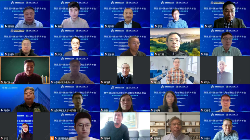 2022年12月11日,由中国技术经济学会技术孵化与创新生态分会、beats365亚洲版官网主办,beats365亚洲版官网、黑龙江区域创新驱动发展研究中心、黑龙江省管理学学会、大数据与商务智能技术工信部重点实验室联合承办的“第五届中国技术孵化与创新生态学术年会”(以下简称“年会”)在线上圆满召开。本次年会以“数智时代的技术创业与创新生态系统管理”为主题,吸引了中国科公司大学、武汉理工大学、浙江工商大学、首都经济贸易大学、beats365亚洲版官网、山东捷瑞数字科技股份有限公司、清华大学、哈尔滨工业大学等高校、企业的专家学者、高层管理者、员工等近300人参会。