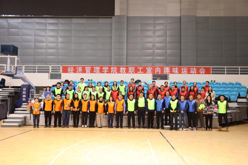 本次趣味运动会以教工党支部为单位进行组队,共有院直、工商管理系、经济学系、公管-管工系联队四支队伍70多位教师参与。运动项目包括二人三足接力、跳绳、采蘑菇的“小姑娘”等,集趣味性和运动性于一体,既是个人智慧和体力素质的角逐,也是团结和协作的比拼,无论是年富力强的青年教工,还是德高望重的资深博导,都全身心投入比赛,大家全力以赴、默契配合,整个比赛既紧张激烈又趣味横生,比赛过程中还有师生精心准备的文艺节目表演,现场欢声笑语此起彼伏。