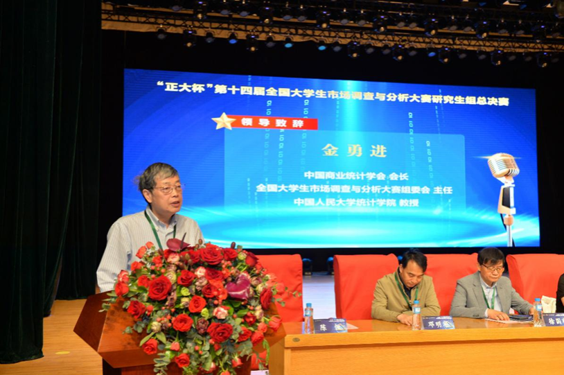 中国商业统计学会会长、大赛组委会主任、中国人民大学教授金勇进致辞