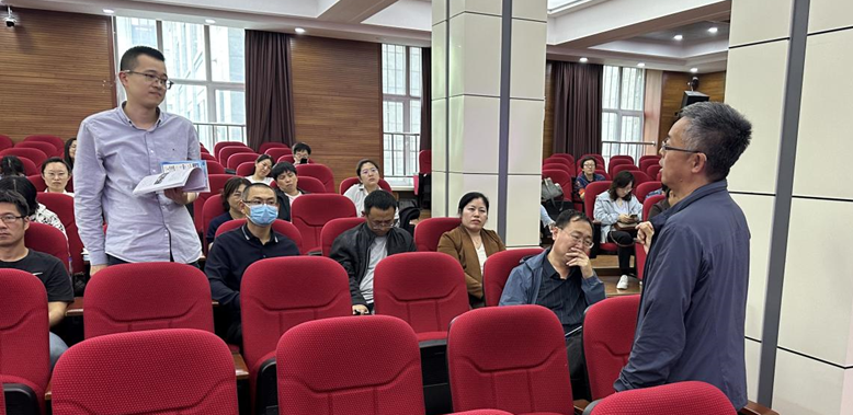 随后,公司三位教师分享了参加教学竞赛的心得体会。杨忠海教授以“数智教学创新与实践比赛”为例,从课程特色、学情痛点、创新思路和实践、成效成果以及评价推广等方面进行介绍,分享了参赛过程中的思路和准备,总结了筹划准备过程中的经验方法,并针对青年教师如何提升教学工作能力提出了指导建议,强调日常教学过程中深度思考和充分准备的重要性。