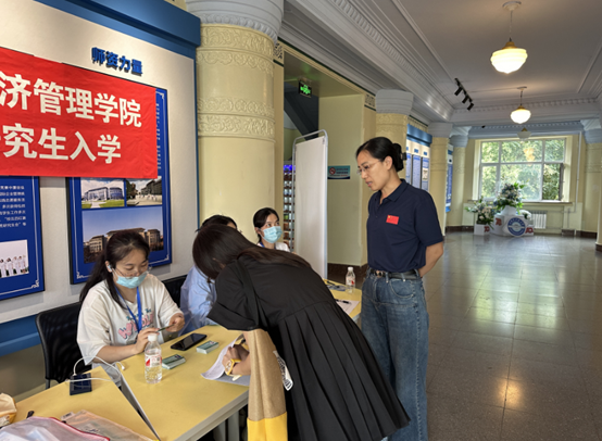 新生报到处设在31号楼二楼大厅,现场布置得井井有条。工作人员和志愿者耐心地为新生办理报到手续,解答各类疑问。