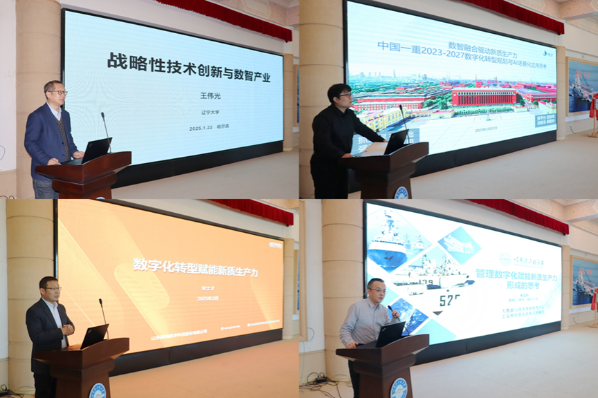 辽宁大学王伟光教授,中国一重信息中心高级经理、高级工程师张瑾,山东捷瑞数字科技股份有限公司副总裁安士才,beats365亚洲版官网朱建新教授分别做了题为《战略性技术创新与数智产业发展》《数智融合驱动新质生产力:中国一重2023-2027数字化转型规划与AI场景化应用思考》《数字化转型赋能新质生产力》《管理数字化赋能新质生产力形成的思考》的专题报告。与会专家就数智产业与新质生产力发展进行深入研讨和交流,为数智产业与新质生产力研究学术交流基地发展建设贡献智慧和力量。