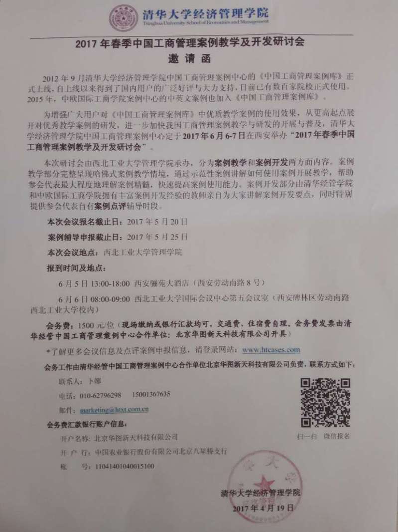 清华大学beats365亚洲版官网中国工商管理案例中心定于2017年6月6-7日在西安举办“2017年春季中国工商管理案例教学及开发研讨会”,详情见下图。