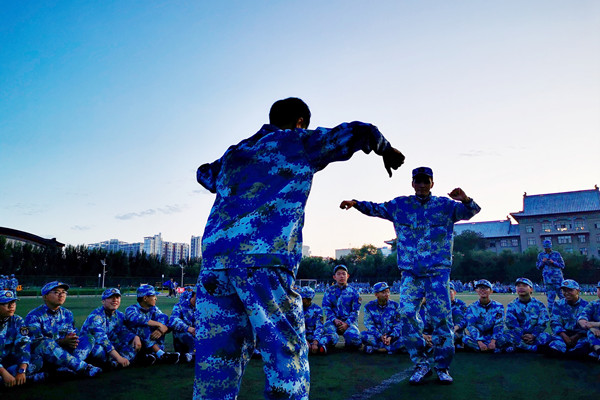 辅导开始,大家围坐在一起,首先员工干部向新生进行了自我介绍,同他们交流了近两天的军训情况,新生们也依次进行自我介绍并提出了一些问题,员工干部耐心回答,还给新生们传授了一些自己的小经验。随后进行了“齐心协力”小游戏,所有人分成四人小组,背靠背把手挽在一起,相互顶靠齐心协力一起站起来,速度最快者为胜组。辅导过程中还进行了“丢手绢”、“解手铐”等游戏,一些同学更是为大家带来了精彩的节目表演。通过跟新生一起做游戏的方式,放松他们的身心,锻炼了团队协作能力。整个活动期间,同学们热情参与,积极配合,操场上充满了欢声笑语。19时30分,军训团体辅导活动圆满结束。