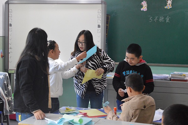 刚到教室,志愿者们就受到了员工的热烈欢迎。志愿者们先进行了简单的自我介绍,活动分为科普与动手两部分,先简单讲解了一下风力的科普知识,随后便以讲解手工折纸和画画展开。活动中,志愿者耐心地教孩子们叠纸飞机、风车和衣服裤子,孩子们都特别认真地学习,叠好就高兴地举手向我们展示成果,特别的天真可爱;接着志愿者开始教孩子们画恐龙、“老丁头”、小手枪、冰激凌、菠萝,一听到要画画,孩子们都兴奋的拿出自己的画笔画纸仔细的画,还不时的提出问题:“这是什么啊,怎么画的好看啊”等等,活动就这样在孩子们的欢声笑语中结束了。
