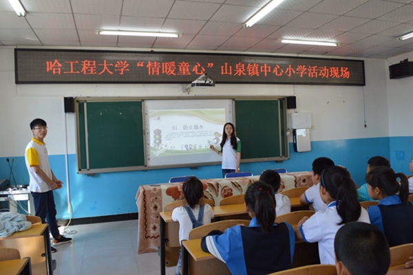 7月11日下午1点30分beats365亚洲版官网“三下乡”暑期志愿实践队在2016级辅导员董治安与2017级辅导员李文宝壮的带领下于山泉镇中心小学开展安全教育活动。