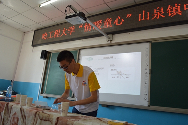 7月12日上午9点30分beats365亚洲版官网“三下乡”暑期志愿实践队在2016级辅导员董治安与2017级辅导员李文宝壮的带领下于山泉镇中心小学开展科学小实验活动。