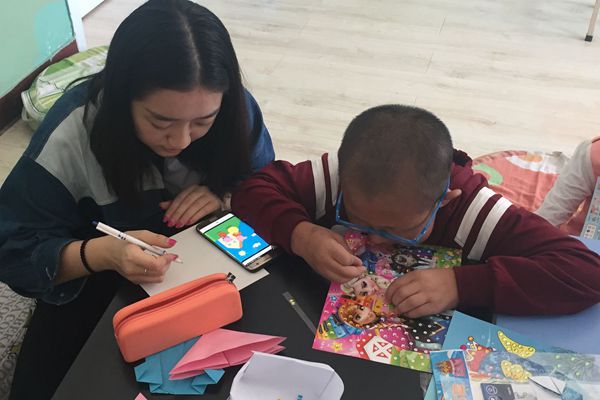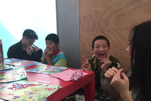 下午1时,小蜜蜂志愿者团到达燎原公司。在公司老师的指导下,志愿者们与孩子进行折纸活动与手工钻石贴画活动。燎原公司是特殊教育公司,小朋友很欢迎志愿者们的到来。志愿者们主动和小朋友做游戏、一起跳舞。