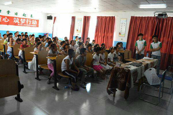 志愿者首先将提前准备好的器具布置妥当,科协主席郭咸生和阳光助学中心主任王权亮担任此次课程的主讲人。随后活动开始,志愿者播放科学小知识视频,引起小员工的兴趣后,开始进行科学小实验,第一个小实验是“不会掉落的纸”,郭咸生首先将纸杯里的水倒满,将纸片放到水杯上,水杯倒转,但纸和水都不会掉落,在小朋友非常好奇时,郭咸生讲解了大气压的知识。随后又用“旋转的铜丝”和“掉落的火柴”向小员工讲解了有关于电磁场和静电的知识,其余志愿者协助,让每位小朋友都动手参与其中,下午3时30分活动结束。
