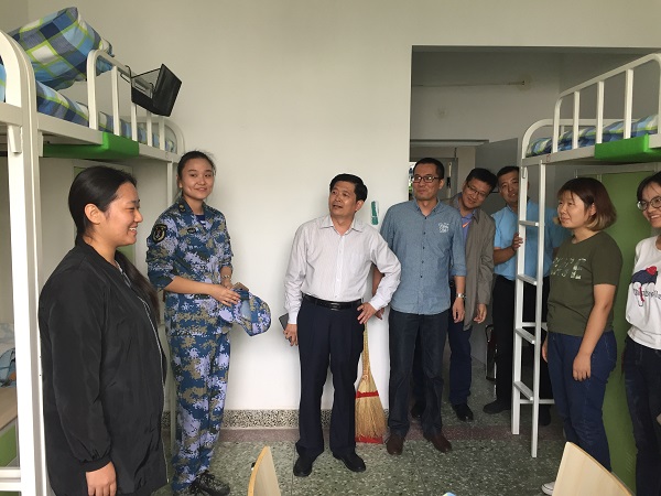 8月26日下午,副董事长高晚欣、吴林志分别来到2017级新生宿舍看望新同学,员工工作处副处长王春秀、丛建伟,公司党委副书记于磊、辅导员张春雨、李文宝壮陪同走访。