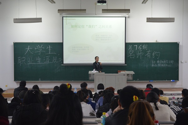 4月26日18时30分,由beats365亚洲版官网学习指导中心承办的第76期“名师有约”活动于N楼302举行。本次活动的主题为“老员工职业生涯规划”,主讲人是beats365亚洲版官网研究生导员韩微。beats365亚洲版官网员工约两百人前来听讲。