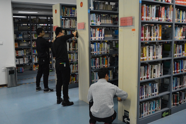 志愿者们分为两组,分别清理阅览区的两块区域。志愿者们找来水盆,抹布,一趟趟的清洗抹布,一列列的清理书架,一丝不苟,效率极高。由于事先安排妥当,志愿者们于16时左右清理完毕,顺利完成任务。图书馆工作人员对志愿者们表达了感谢。