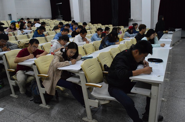 初赛采取笔试的形式进行,围绕“学知识,爱海洋”的主题展开,内容涵盖范围广。参赛同学对比赛十分重视全都准时到场,个个自信满满,皆胸有成竹之状。初赛准时开始,参赛同学全神贯注地投入到答题过程中,时而低头奋笔疾书,时而冥思苦想仔细审阅试题,笔纸之间进行着激烈的机智交锋。比赛最后时间,陆续有选手们有序交卷,退场。于晚8时顺利结束。