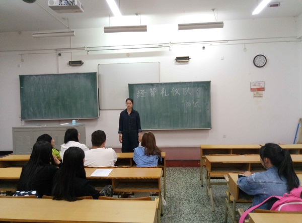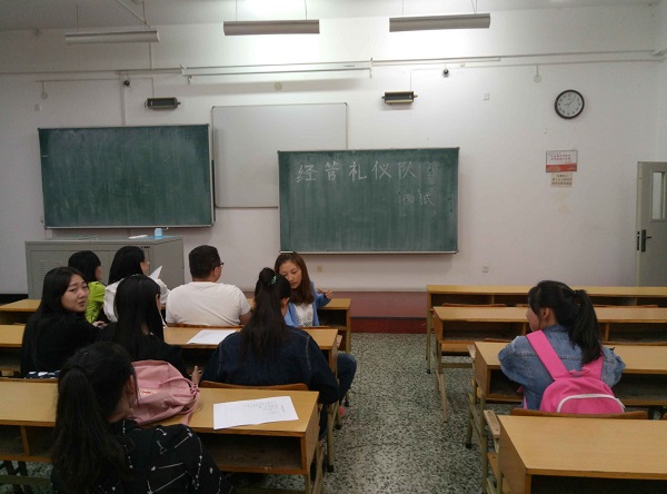 9月21日晚9点,beats365亚洲版官网礼仪队面试于21B412教室顺利进行,beats365亚洲版官网员工会副主席周天、礼仪队队长修雪及女生部成员任评委,部分大一新生参加面试。