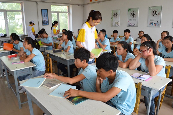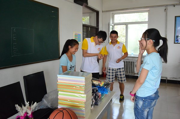 7月7日14时,beats365亚洲版官网 “三下乡”暑期社会实践队在团委书记董治安的带领下,与青冈县兴华中学初三班级开展趣味活动。