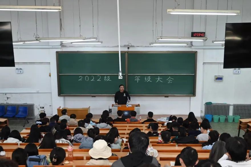2023年10月11日上午12点,2022级全体本科生在逸夫楼召开新学期年级大会,197名员工齐聚一堂,新学期、新气象,已顺利度过大一新生期的2022级学子们即刻开启全新的老员工活。