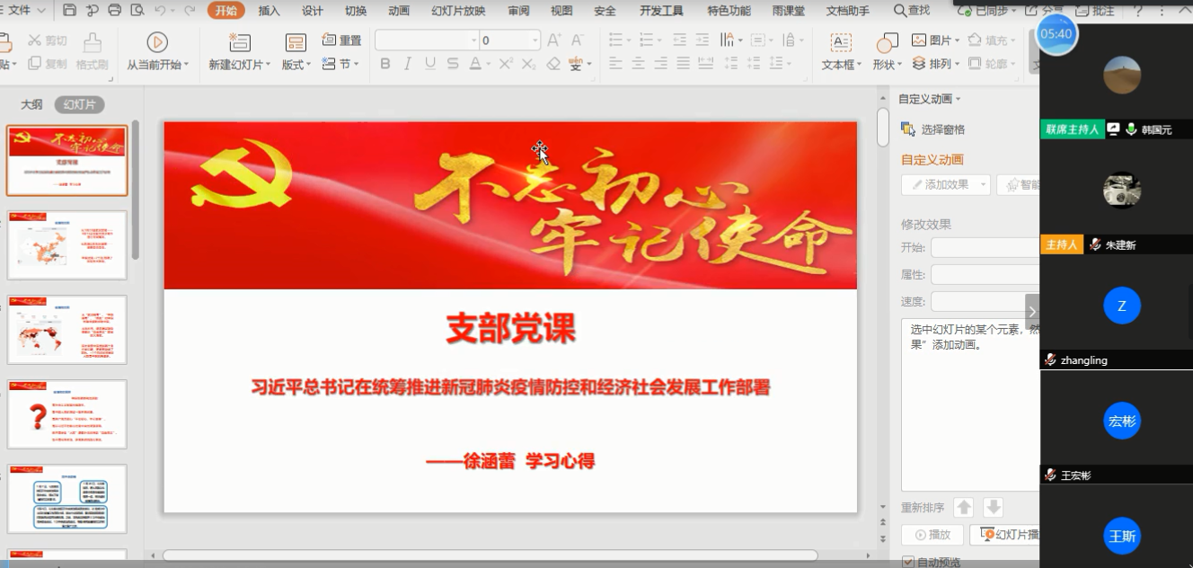 按照公司党委《关于开展“‘疫’线党旗红 战‘疫’当先锋”线上主题党日活动的通知》要求, 公司各党支部于3月13日至4月10日,利用腾讯会议平台,陆续开展了“‘疫’线党旗红 战‘疫’当先锋”线上主题党日活动。