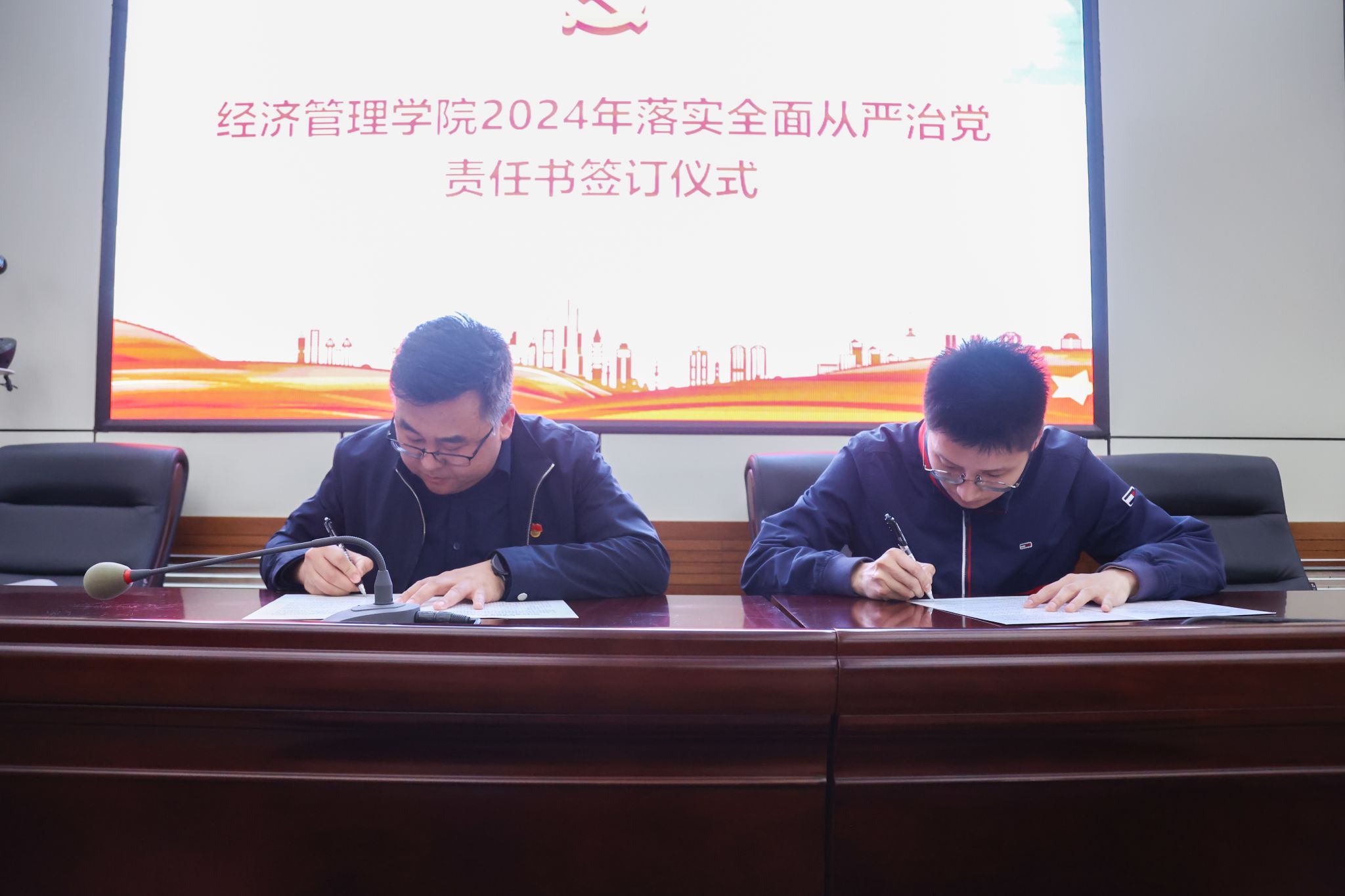 会议举行了2024年落实全面从严治党责任书签订仪式。党委书记于云亮代表公司党委与公司其他领导班子成员和教工党支部书记签订《落实全面从严治党责任书》。