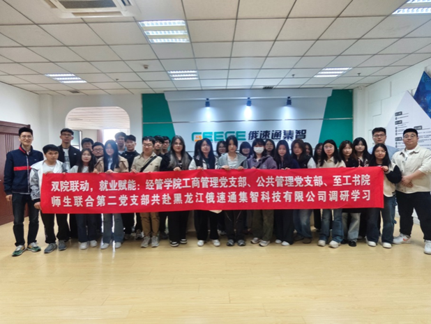 为深入推进党建引领下“公司+书院”协同育人实践,在公司前沿选修类课程《工业领域低碳管理》支持下,工商管理党支部、公共管理党支部与至工书院员工党支部共赴黑龙江俄速通集智科技有限公司开展实习实践活动,工商管理党支部书记刘天森、公共管理系青年教师高羽作为课程主讲教师带队前往,30余位大二学年同学参加学习交流。