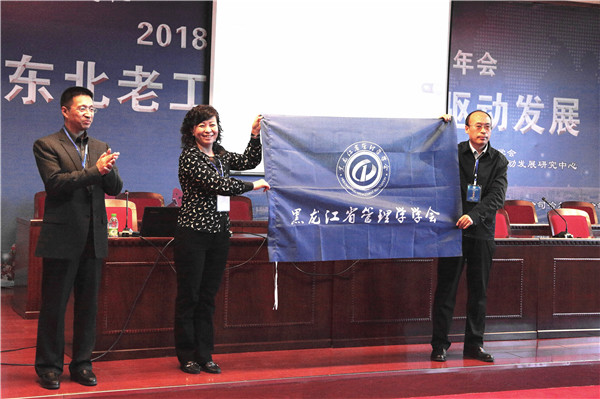将黑龙江省管理学学会会旗授予2019年年会承办方黑河公司